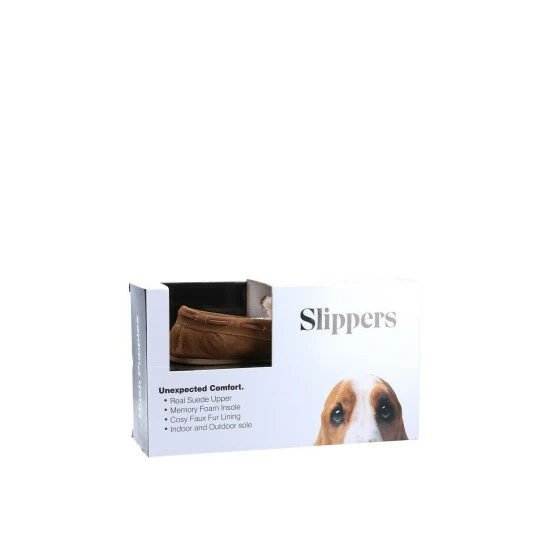 Ladies slipper from Hush Puppies the Allie; crafted with real Suede upper. Cosy faux fur lines this slipper and a memory foam foot bed cushions the feet. The indoor and outdoor sole is flexible and hardwearing. Comes gift boxed for the perfect present