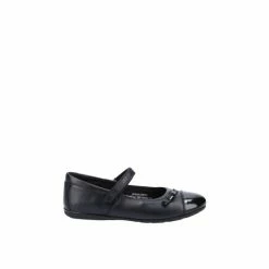 Danielle ballerina school shoe. Featuring a patent toe cap and bow design detail, this beautiful shoe is perfect for a stylish and comfortable look. Featuring memory foam insole, micro fresh lining and a secure velcro strap for all-day wear.