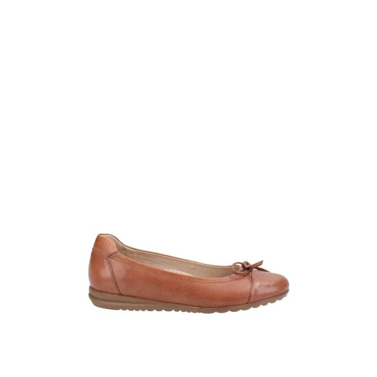 Jolene is a classic comfort timeless design from Hush Puppies. Comfortable slip on ballerina with leather upper and bow detail. Features cushion comfort memory foam leather sock and lightweight, flexible TPR sole.