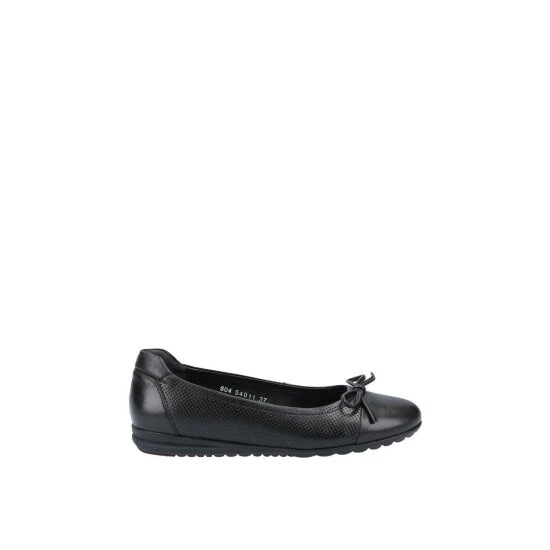 Jolene is a classic comfort timeless design from Hush Puppies. Comfortable slip on ballerina with leather upper and bow detail. Features cushion comfort memory foam leather sock and lightweight, flexible TPR sole.