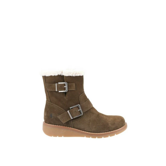 The Lexie Boot; crafted with water resistant real suede upper with a soft shearling topline enables this to combine trendy and comfort all into one. Its double branded buckle strap detail adds to its chic style.