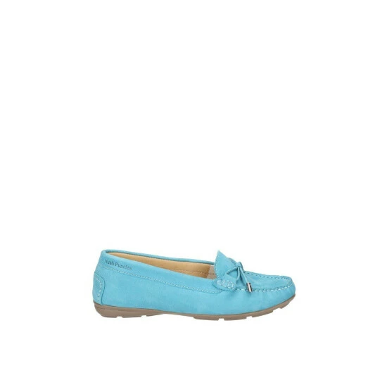 Ladies driver shoe perfect for relaxed day-to-day styling with comfortable moccasin toe, soft nubuck upper, leather sock and flexible rubber sole. Leather Upper with Bow and Metal End Detail.