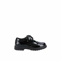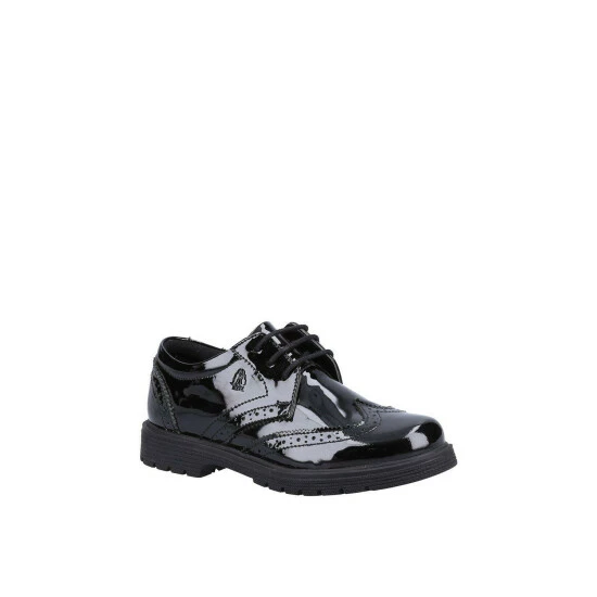 Provides an approx 2cm heel height with stacked effect in addition to a treaded sole for extra grip. Lace Up fastening for a secure fit completed with a Patent Finish.