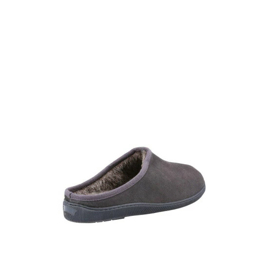 The Ashton; With its flexible and hardwearing sole, this slipper is suitable for both indoor and outdoor use. Its cosy faux fur sock lining are sure to keep feet warm. Also features a memory foam insole for added comfort.